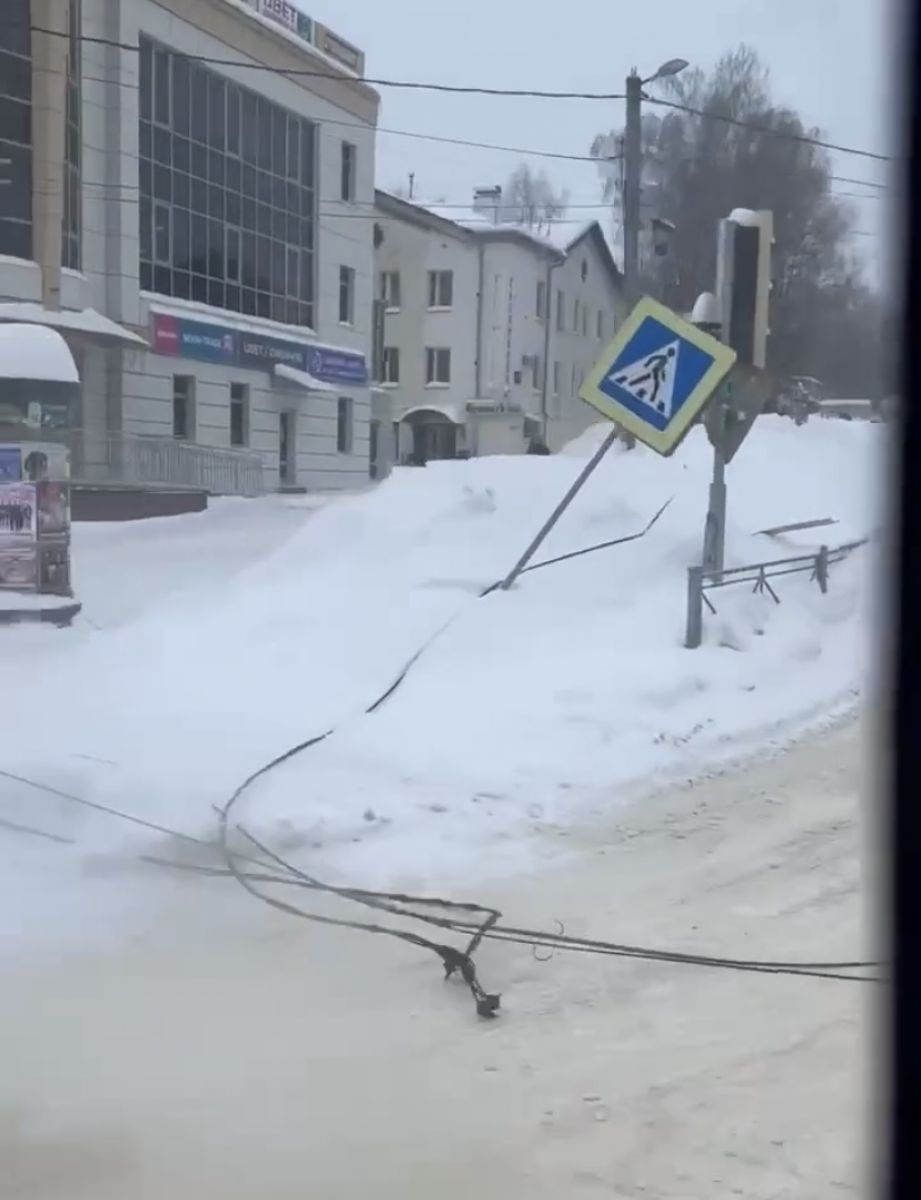 Упал столб с проводами на улице Погодина во Владимире