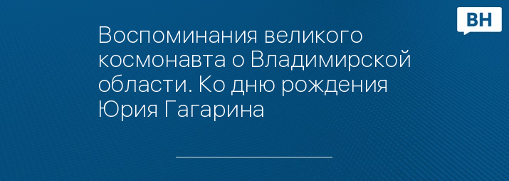 Воспоминания великого космонавта о Владимирской области. Ко дню рождения Юрия Гагарина