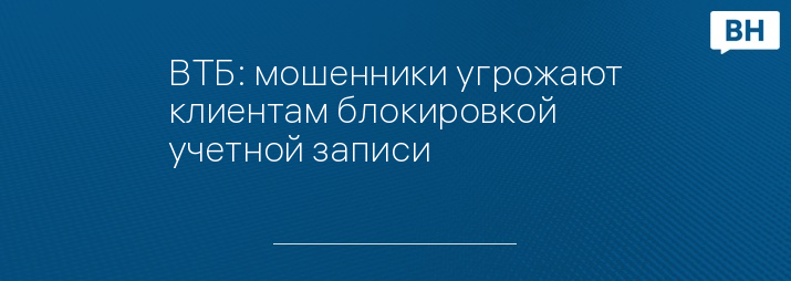 ВТБ: мошенники угрожают клиентам блокировкой учетной записи