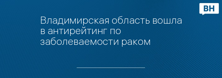 Как сообщает Лента, ру, Владимирская область вошла в антирейтинг по заболеваемости раком.