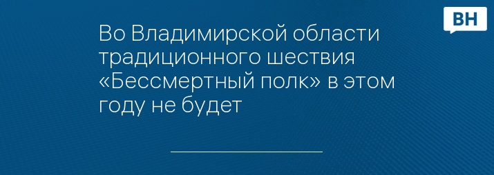 Акции "Бессмертный полк" во Владимирской области, как и в других регионах страны, в этом году не будет. Об этом сообщил Интерфакс.