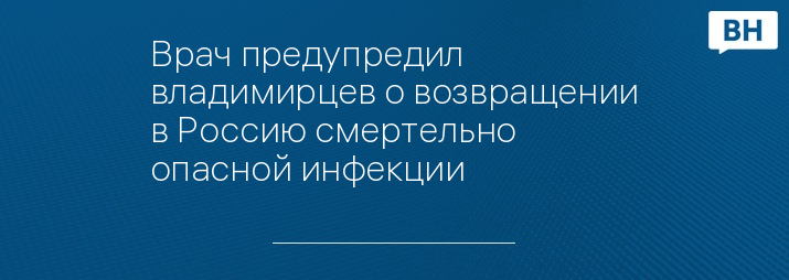 Врач предупредил владимирцев о возвращении в Россию смертельно опасной инфекции