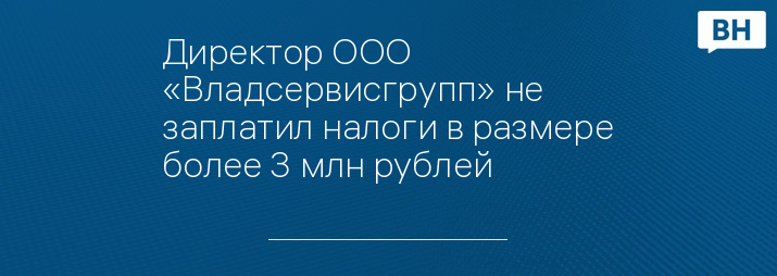 Директор ООО «Владсервисгрупп» не заплатил налоги в размере более 3 млн рублей