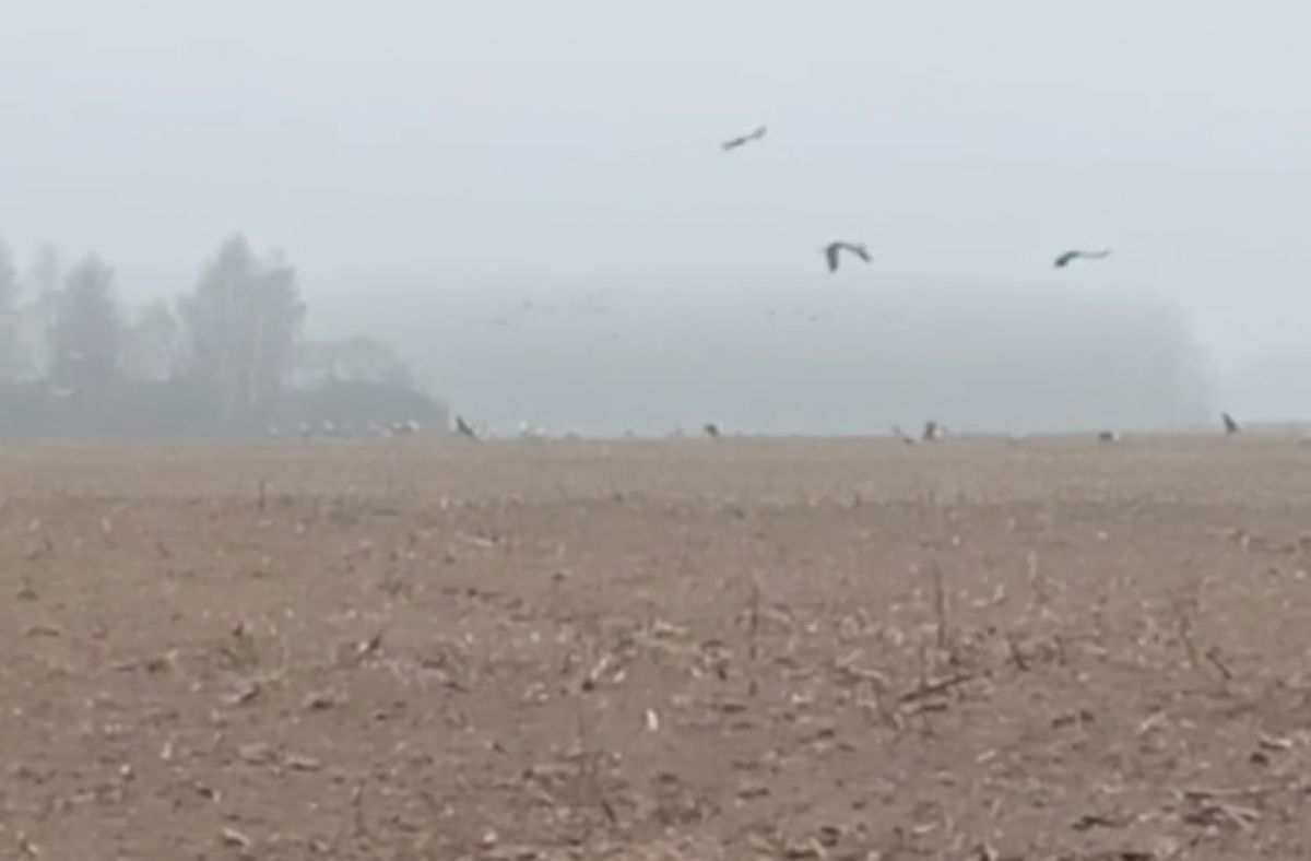 Во Владимирской области замечено редкое скопление серых журавлей