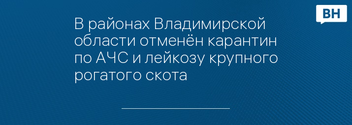 В районах Владимирской области отменён карантин по АЧС и лейкозу крупного рогатого скота