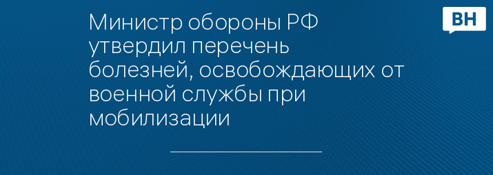 Министр обороны РФ утвердил перечень болезней, освобождающих от военной службы при мобилизации