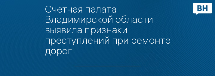 Счетная палата Владимирской области выявила признаки преступлений при ремонте дорог