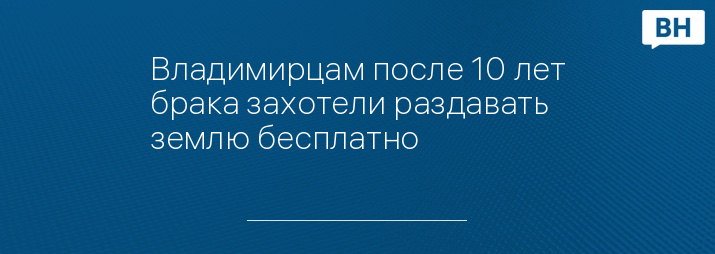 Владимирцам после 10 лет брака захотели раздавать землю бесплатно
