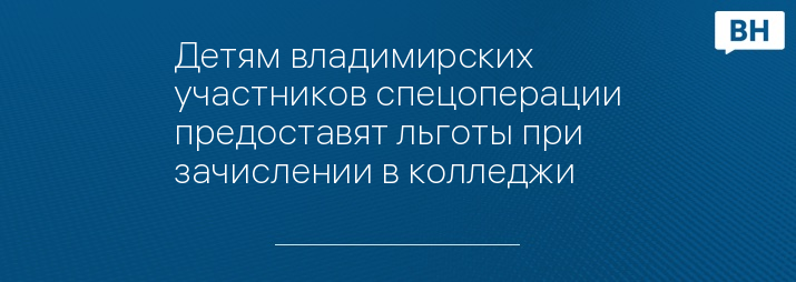 Детям владимирских участников спецоперации предоставят льготы при зачислении в колледжи