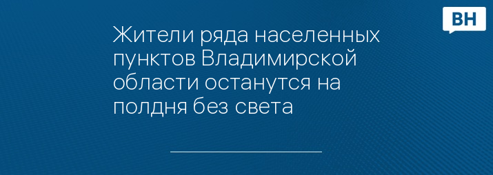 Жители ряда населенных пунктов Владимирской области останутся на полдня без света
