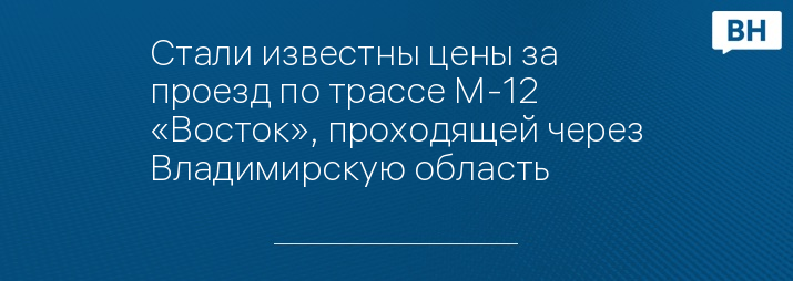 Стали известны цены за проезд по трассе М-12 «Восток», проходящей через Владимирскую область