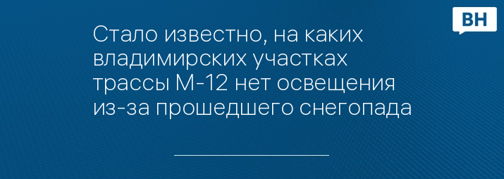 Стало известно, на каких владимирских участках трассы М-12 нет освещения из-за прошедшего снегопада