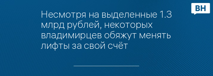 Несмотря на выделенные 1.3 млрд рублей, некоторых владимирцев обяжут менять лифты за свой счёт