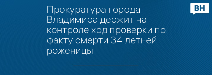 Прокуратура города Владимира держит на контроле ход проверки по факту смерти 34 летней роженицы, заявили в пресс-службе ведомства.