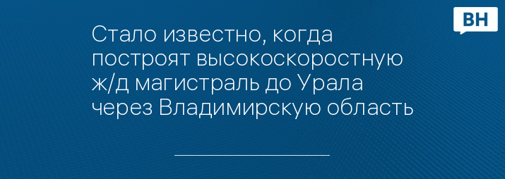 Стало известно, когда построят высокоскоростную ж/д магистраль до Урала через Владимирскую область