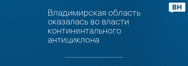 Владимирская область оказалась во власти континентального антициклона