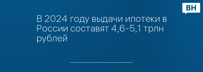 В 2024 году выдачи ипотеки в России составят 4,6-5,1 трлн рублей