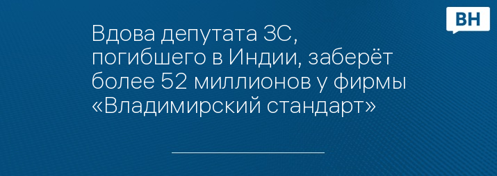 Вдова депутата ЗС, погибшего в Индии, заберёт более 52 миллионов у фирмы «Владимирский стандарт»