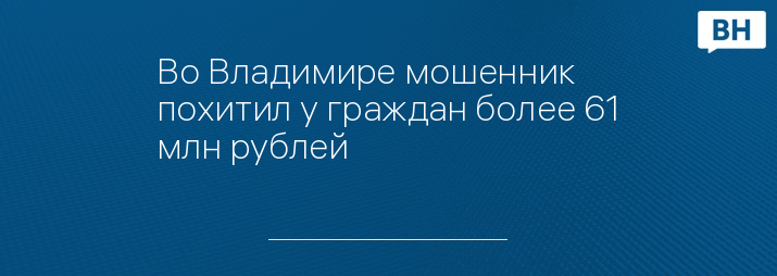 Во Владимире мошенник похитил у граждан более 61 млн рублей