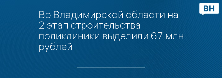 Во Владимирской области на 2 этап строительства поликлиники выделили 67 млн рублей