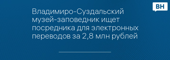 Владимиро-Суздальский музей-заповедник ищет посредника для электронных переводов за 2,8 млн рублей