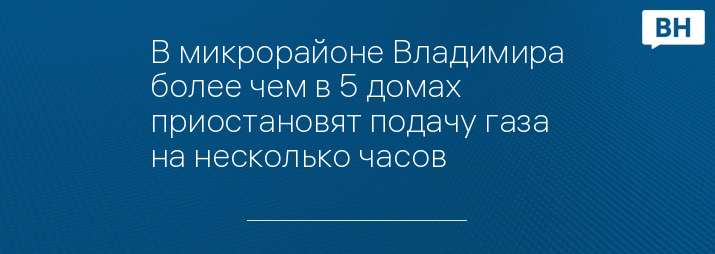 В микрорайоне Владимира более чем в 5 домах приостановят подачу газа на несколько часов