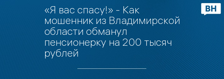 «Я вас спасу!» - Как мошенник из Владимирской области обманул пенсионерку на 200 тысяч рублей
