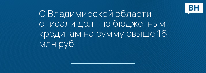 С Владимирской области списали долг по бюджетным кредитам на сумму 16 млн руб