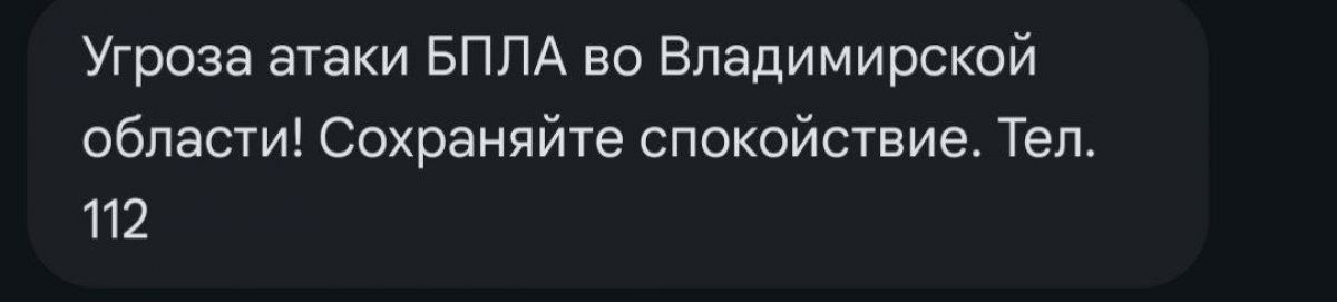 Во Владимирской области действует опасность атаки БПЛА