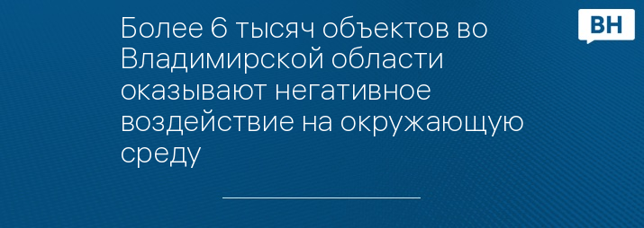 Более 6 тысяч объектов во Владимирской области оказывают негативное воздействие на окружающую среду