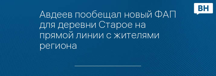 Авдеев пообещал новый ФАП для деревни Старое на прямой линии с жителями региона