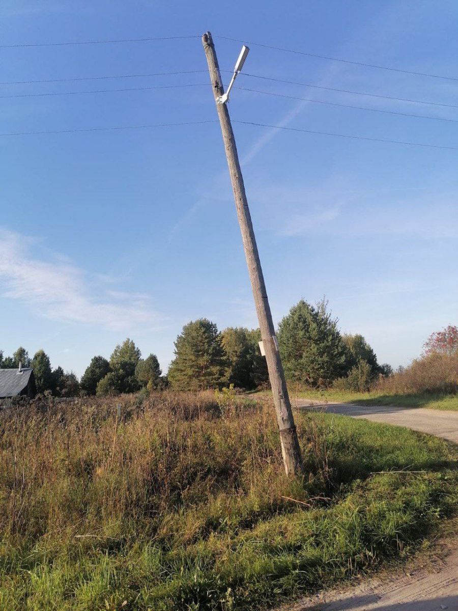 В ходе выезда установлено, что воздушные линии в населенном пункте эксплуатируются на деревянных опорах, часть которых имеет серьезные дефекты и заметные отклонения от вертикали. Такие нарушения создают риск аварийных ситуаций и перебоев в электроснабжении жителей.