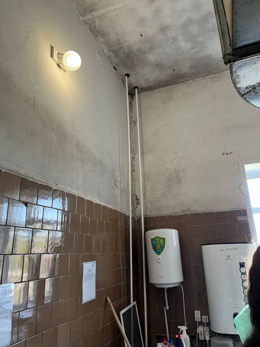 Неприемлемое состояние полов, стен и потолка препятствует влажной обработке поверхностей при помощи моющих и дезинфицирующих средств. Это не соответствует требованиям к организации детского питания.