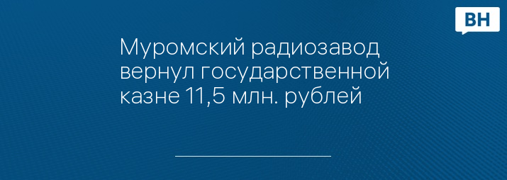 Муромский радиозавод вернул государственной казне 11,5 млн. рублей