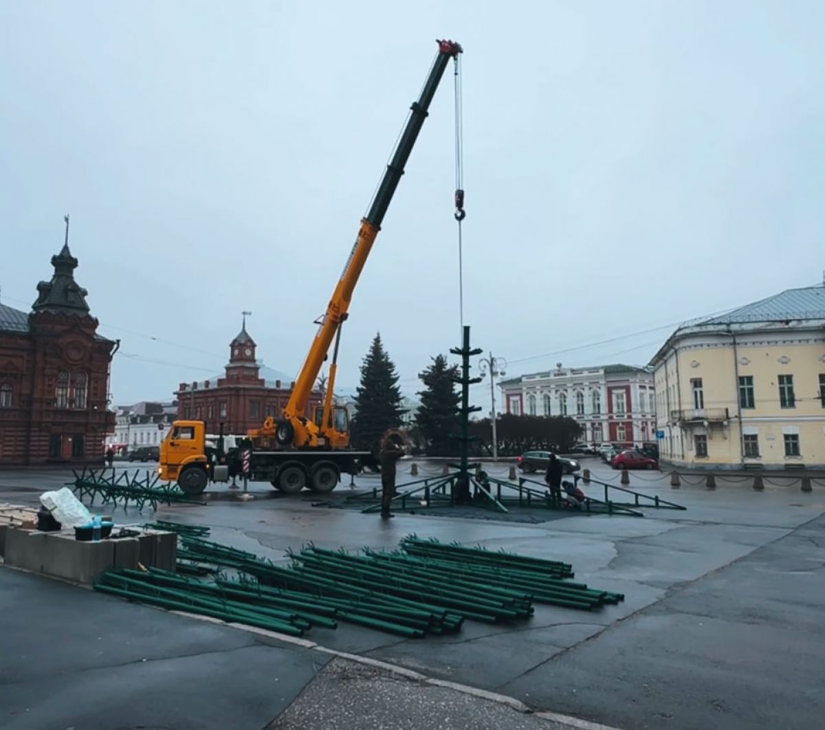 На Соборной площади во Владимире устанавливают новую новогоднюю ёлку