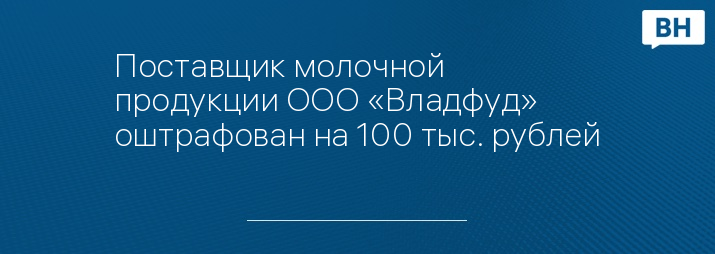 Поставщик молочной продукции ООО «Владфуд» оштрафован на 100 тыс. рублей