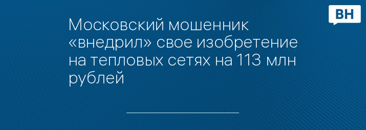 Московский мошенник «внедрил» свое изобретение на тепловых сетях на 113 млн рублей