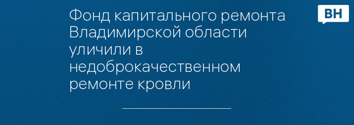 Фонд капитального ремонта Владимирской области уличили в недоброкачественном ремонте кровли