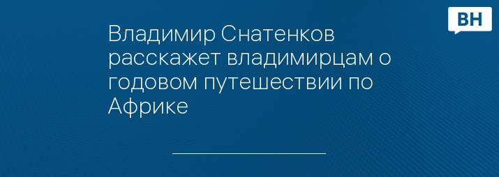 Владимир Снатенков расскажет владимирцам о годовом путешествии по Африке