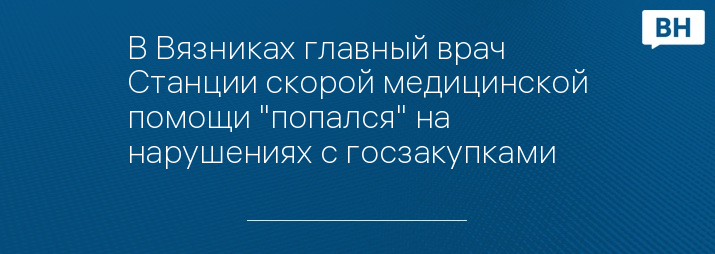 В Вязниках главный врач Станции скорой медицинской помощи "попался" на нарушениях с госзакупками
