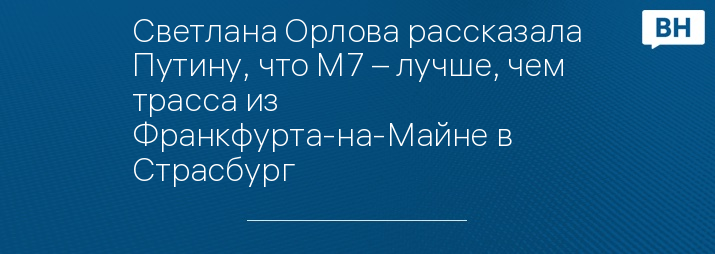 Светлана Орлова рассказала Путину, что М7 – лучше, чем трасса из Франкфурта-на-Майне в Страсбург