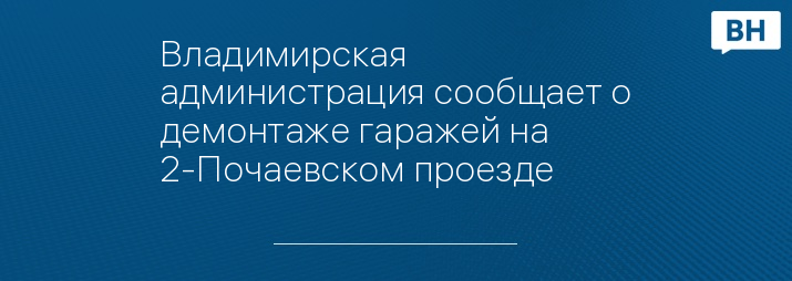 Владимирская администрация сообщает о демонтаже гаражей на 2-Почаевском проезде