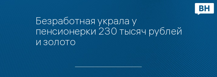 Безработная украла у пенсионерки 230 тысяч рублей и золото