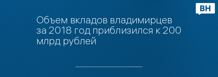 Объем вкладов владимирцев за 2018 год приблизился к 200 млрд рублей
