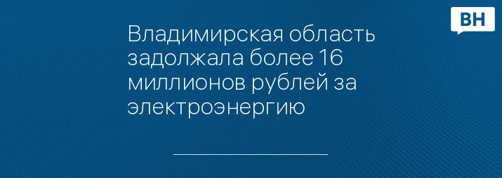 Владимирская область задолжала более 16 миллионов рублей за электроэнергию