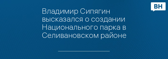 Владимир Сипягин высказался о создании Национального парка в Селивановском районе