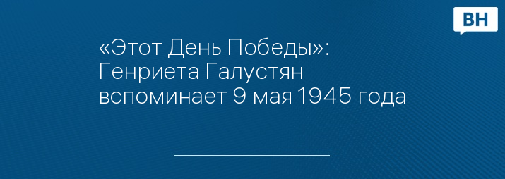 «Этот День Победы»: Генриета Галустян вспоминает 9 мая 1945 года