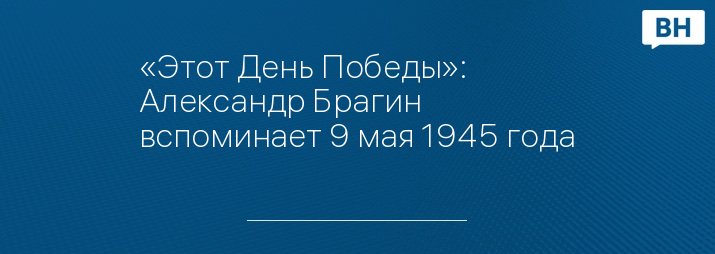 «Этот День Победы»: Александр Брагин вспоминает 9 мая 1945 года