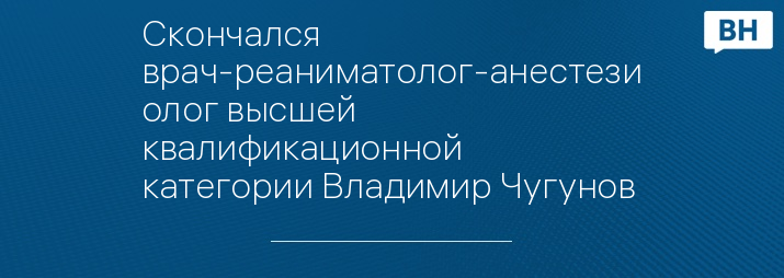 Департамент здравоохранения администрации области сообщил о том, что скончался ветеран здравоохранения, врач-реаниматолог-анестезиолог высшей квалификационной категории Владимир Андреевич Чугунов.