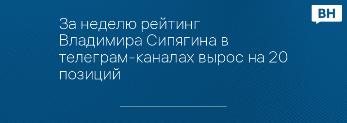 За неделю рейтинг Владимира Сипягина в телеграм-каналах вырос на 20 позиций